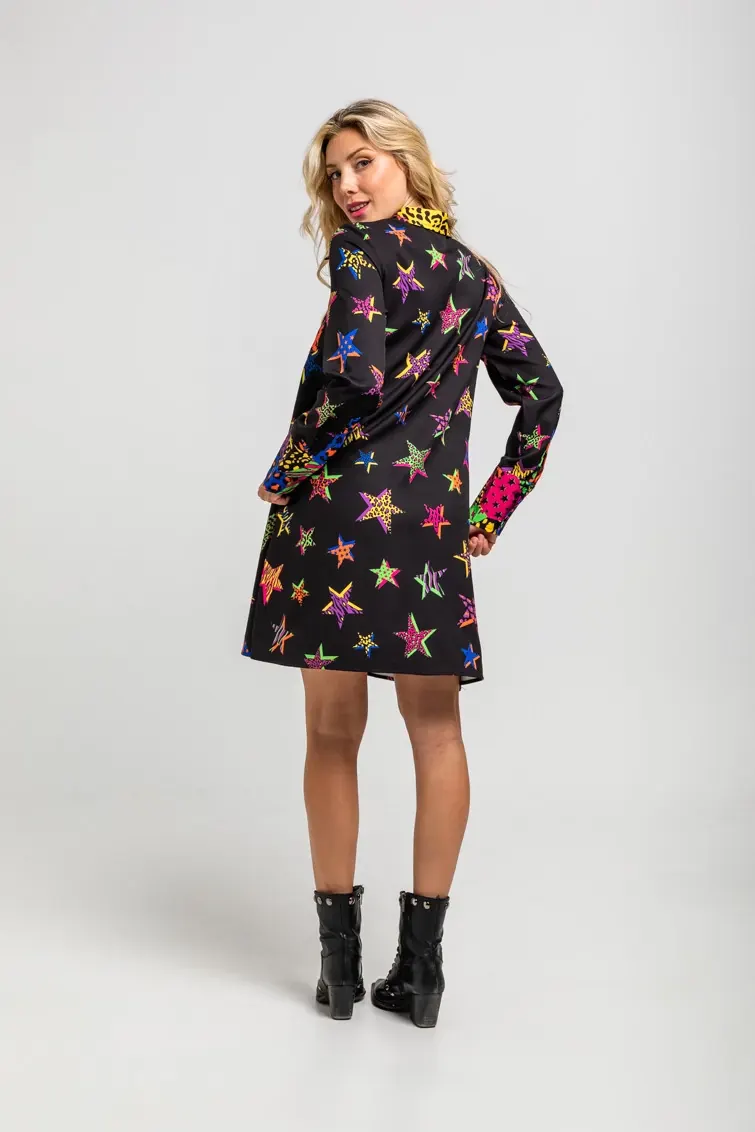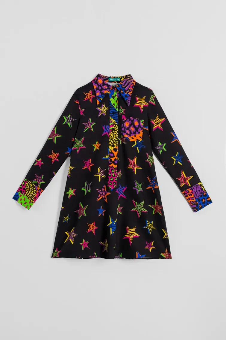 Vestido corte A maxi cuello camisero de estampado de estrellas con animal print - Shiny Girl Lolina ¿ Lo ves para tu Outfit ?