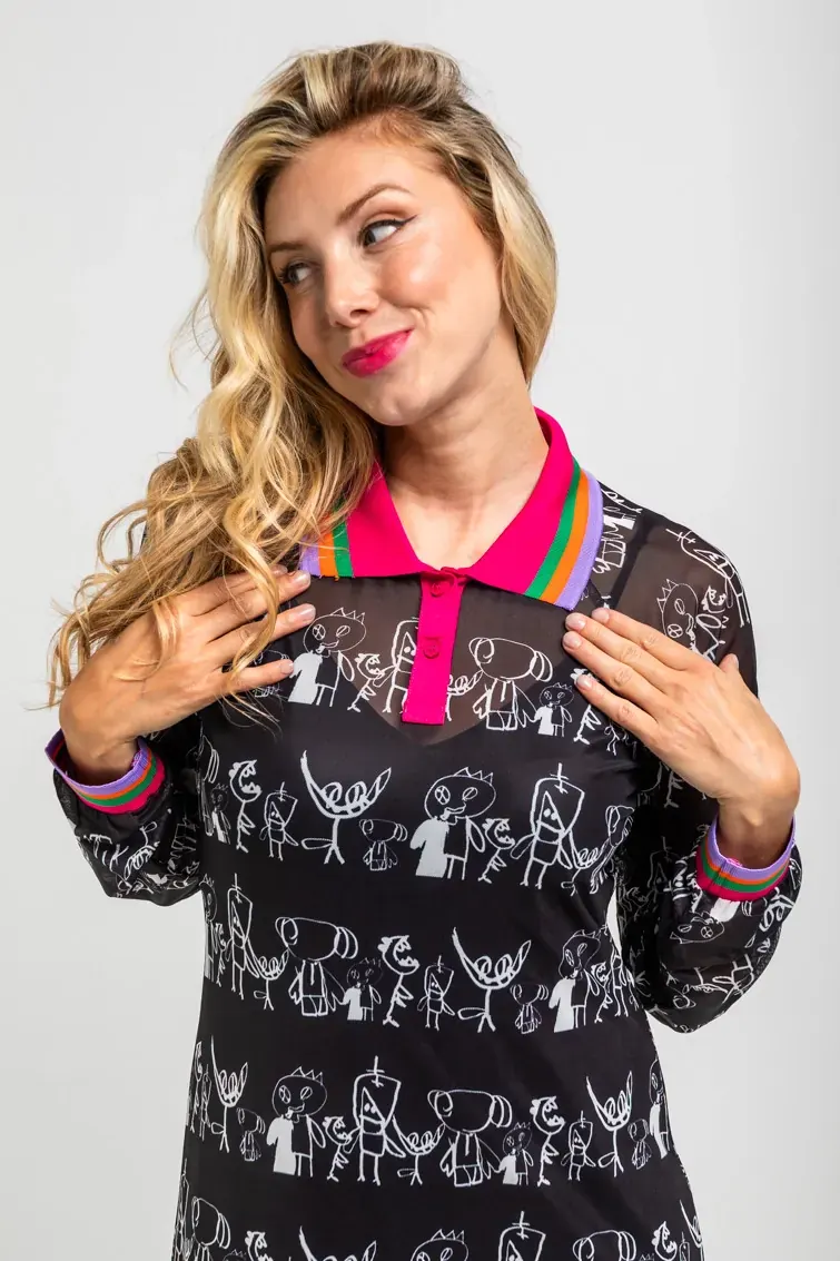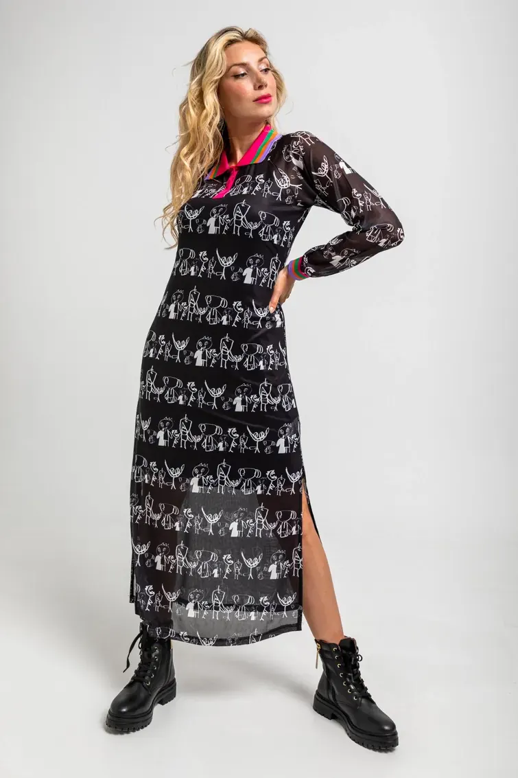 Vestido largo de tul tipo polo de garabatos monocromático - Imagine Lolina ¿ Lo ves para tu Outfit ?