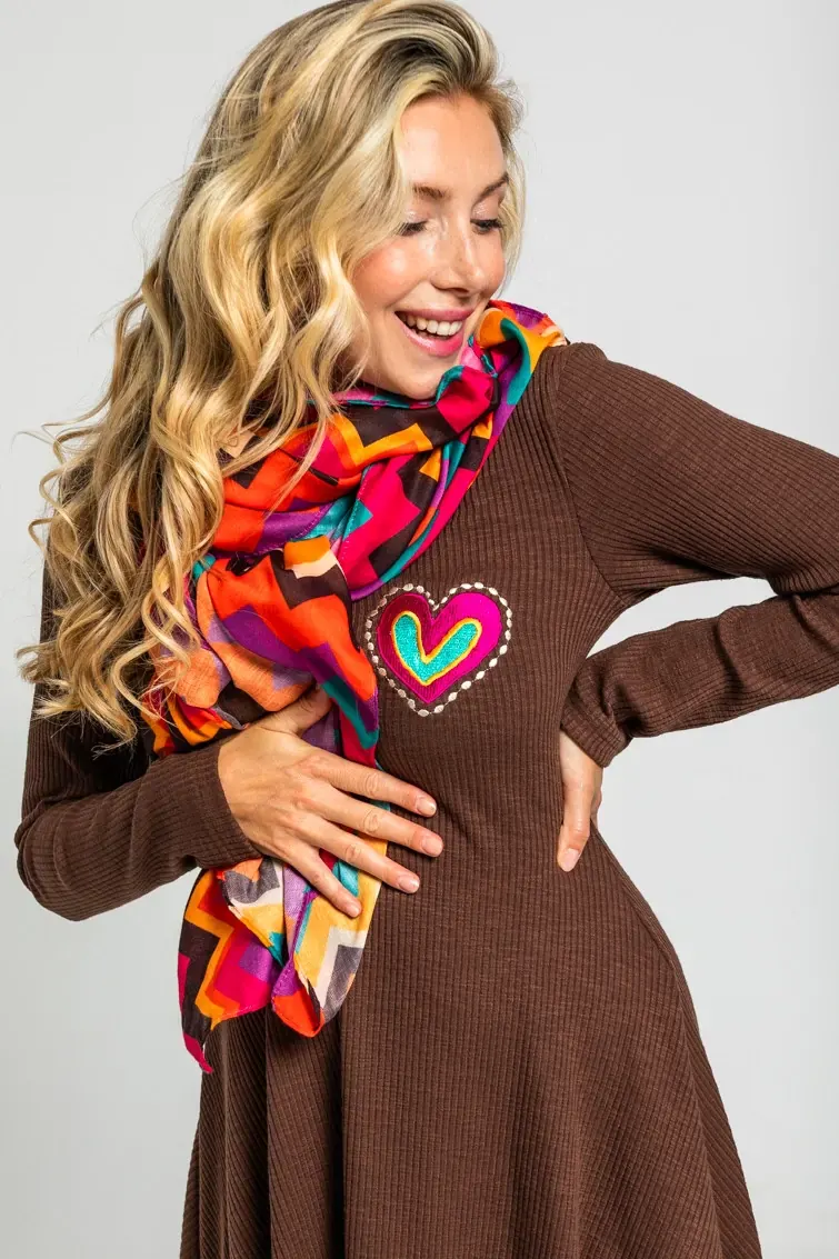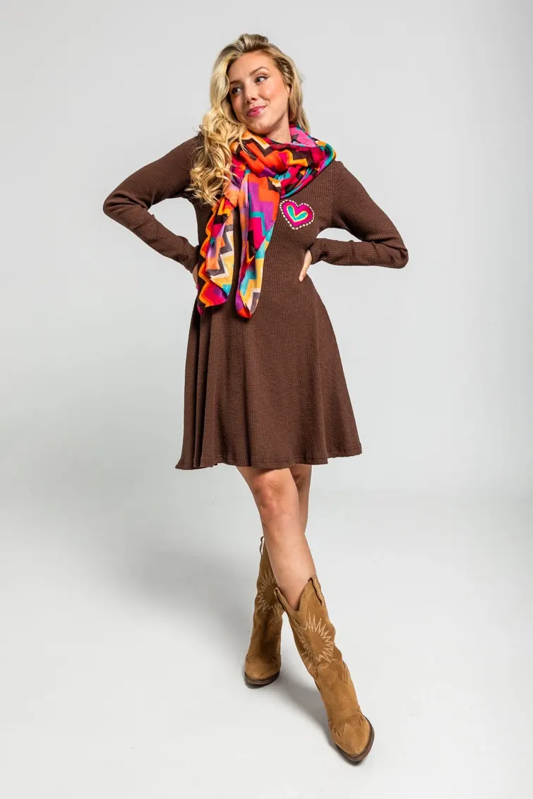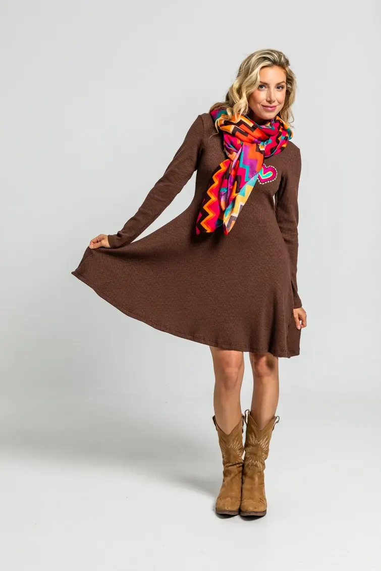 El Vestido Mini Vuelo canalé de estampado paisley marrón chocolate - Freedoom Lolina funciona como un total look, solo hace falta que te pongas un calzado a juego, y ya estás lista.